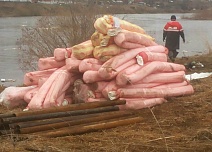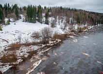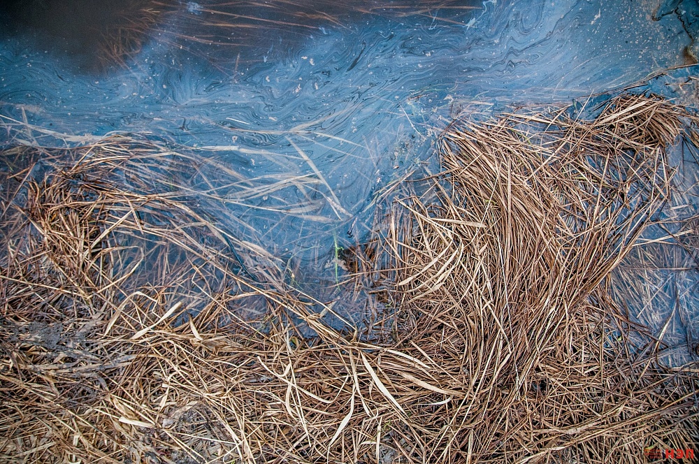 Нефтяной камуфляж на реке Ухта в поселке Шудаяг. Съездили посмотреть, как разлилась нефть. Как мы поняли, проводятся подготовительные работы перед установкой бонов. Выясняем.